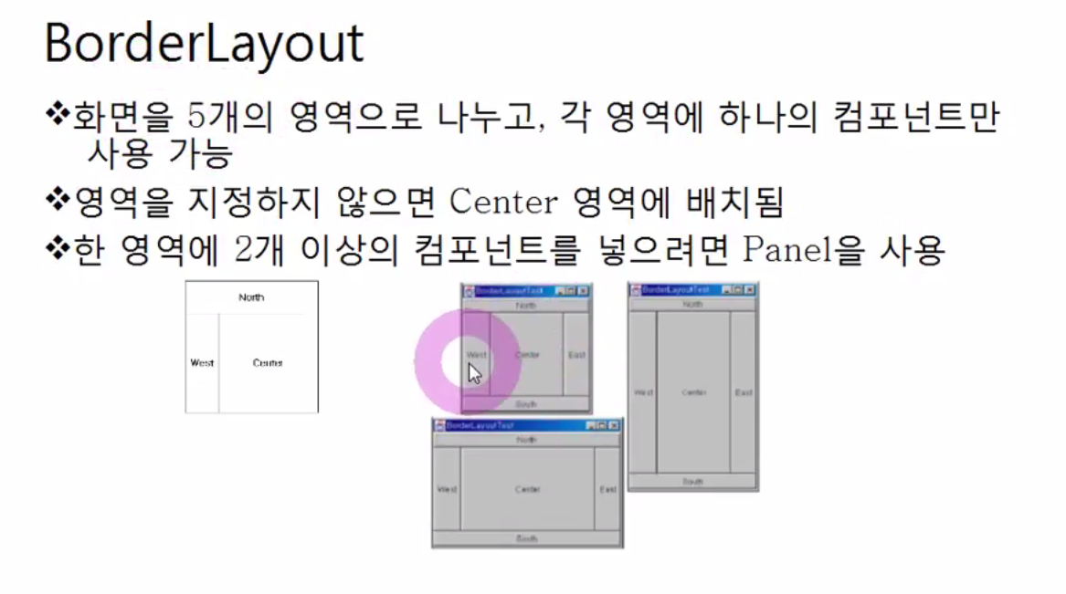 // add(new JButton("버튼5"), "Center");