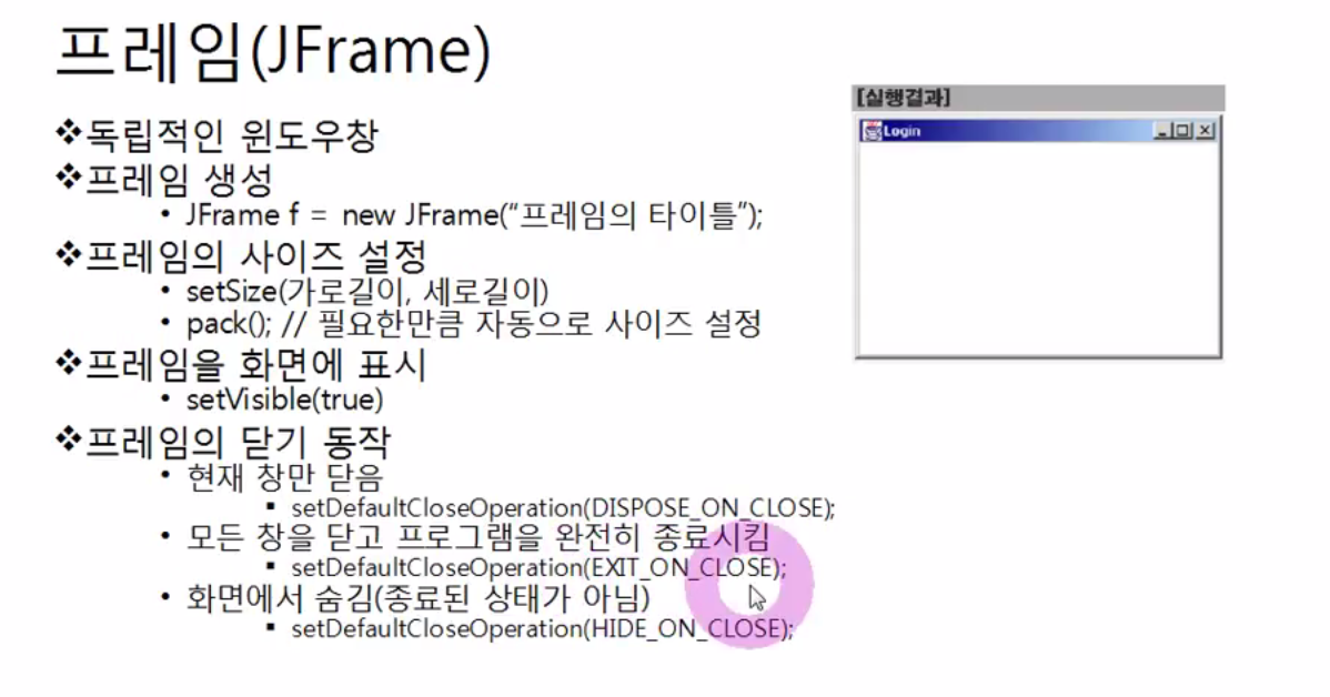 setDefaultCloseOperation(EXIT_ON_CLOSE); //메모리 닫기