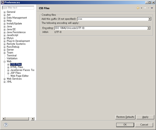 Web-CSS Files, Web-HTML Files, Web-JSP Files Encoding을 UTF-8로 변경