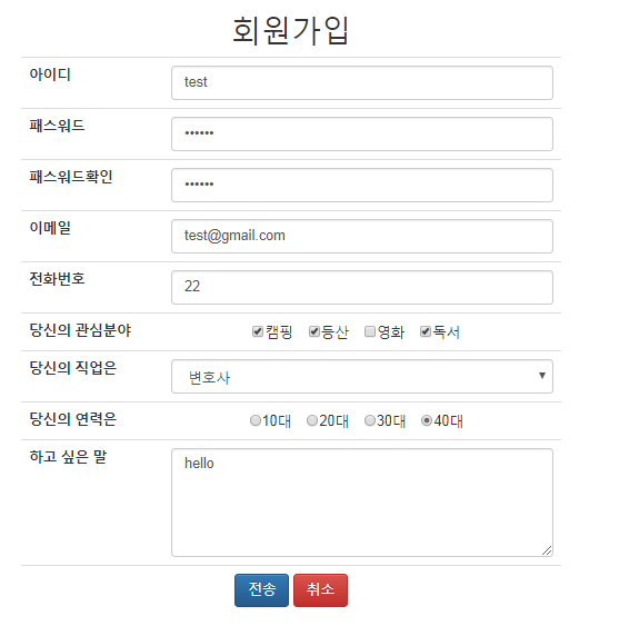 <input type="checkbox" name="hobby" value="캠핑">캠핑
