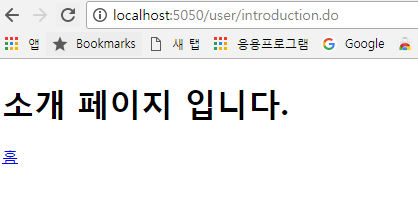 <%@ page language="java" contentType="text/html; charset=UTF-8" pageEncoding="UTF-8"%> <%@ taglib prefix="c" uri="http://java.sun.com/jsp/jstl/core" %> <%@ taglib prefix="form" uri="http://www.springframework.org/tags/form" %> <!DOCTYPE html> <html lang="ko"> <head> <meta http-equiv="Content-Type" content="text/html; charset=UTF-8" /> <title>소개 페이지</title> </head> <body> <h1>소개 페이지 입니다.</h1> <p><a href="<c:url value="/" />">홈</a></p> </body> </html>
