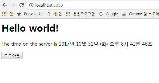 <%@ page language="java" contentType="text/html; charset=UTF-8" pageEncoding="UTF-8"%> <%@ taglib uri="http://java.sun.com/jsp/jstl/core" prefix="c"%> <%@ page session="false"%> <%@ taglib prefix="form" uri="http://www.springframework.org/tags/form" %> <html> <head> <title>Home</title> </head> <body> <h1>Hello world!</h1> <P>The time on the server is ${serverTime}.</P> <p> <form:form action="${pageContext.request.contextPath}/logout" method="POST"> <input type="submit" value="로그아웃" /> </form:form> </body> </html>