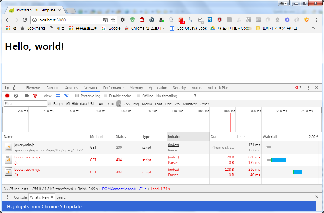 * 부트스트랩 서버를 실행해 보면 다운로드가 안 된 것을 볼 수 있다.