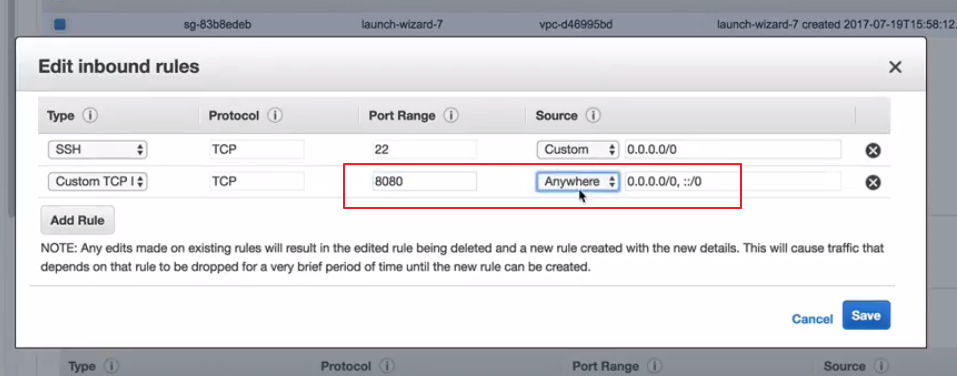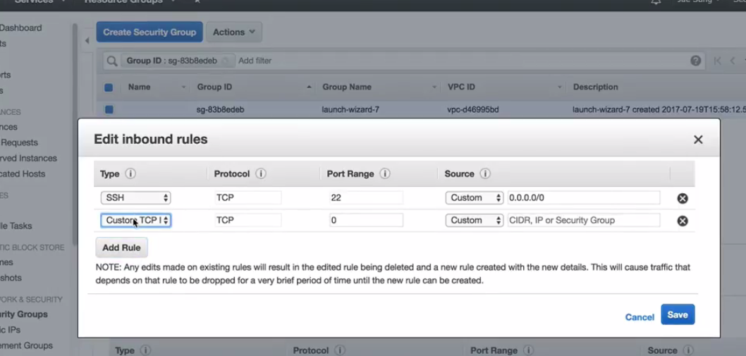 AWS 의 경우 방화벽 해제