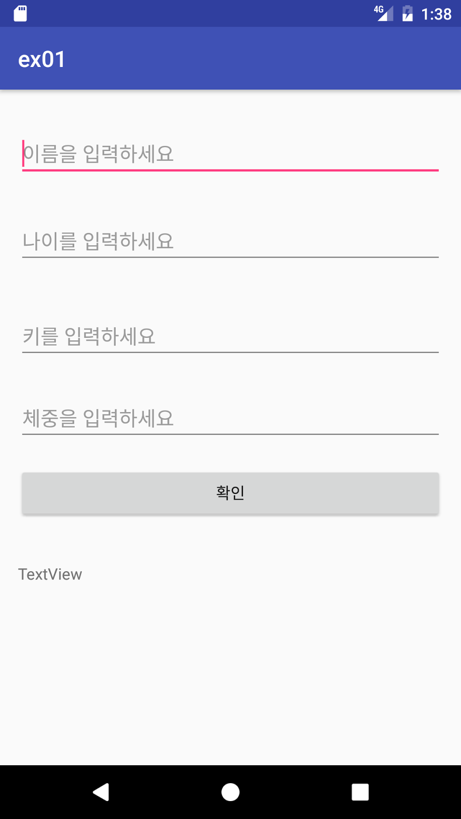 android:hint="체중을 입력하세요"