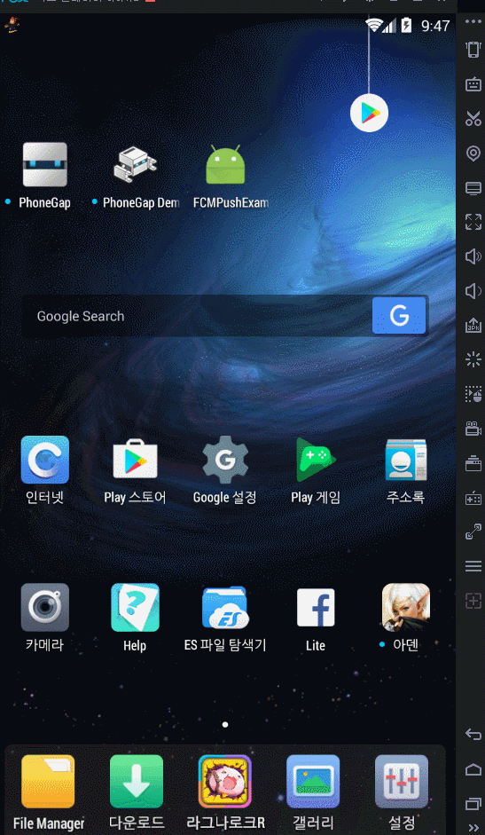 소켓으로 연결방식으로 사용 하는 것이 아니라 구글에서 연결 단말을 이용하는 방식이다.