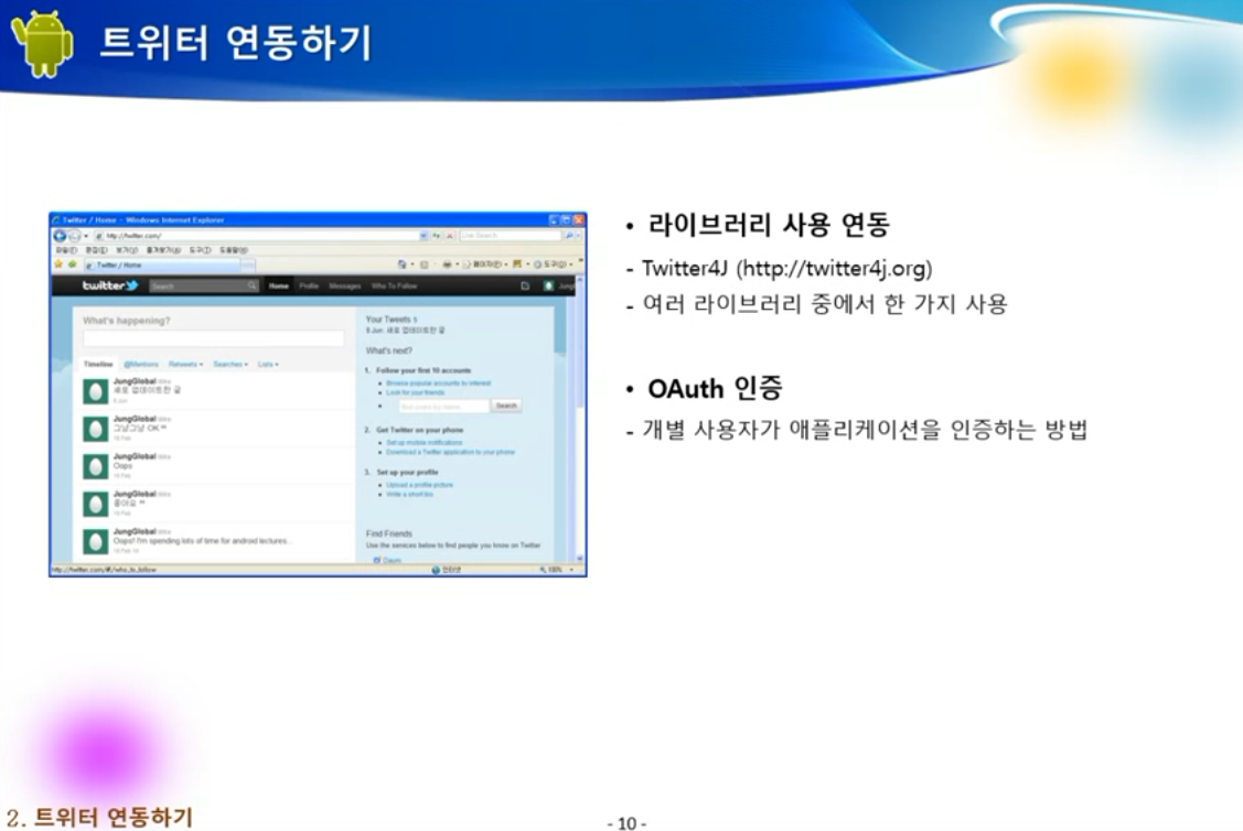 인텐트의 putExtra 의 authUrl 은 트위트의 키값이다.
