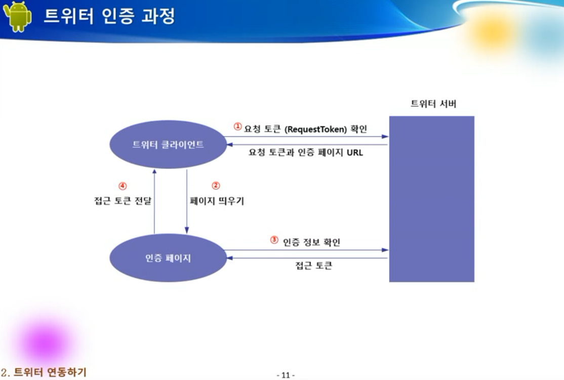 트위터에서 키값을 받아서 로그인 되면 반환 할수 있게 startActivityForResult 로 처리 하였다.