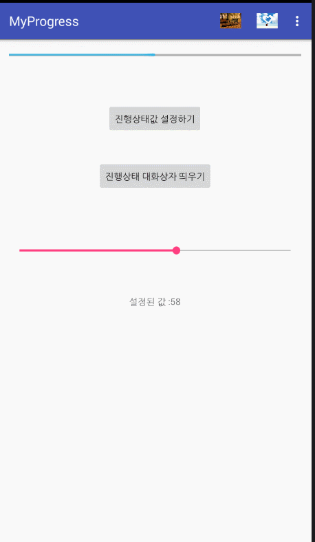 android:text="진행상태값 설정하기"