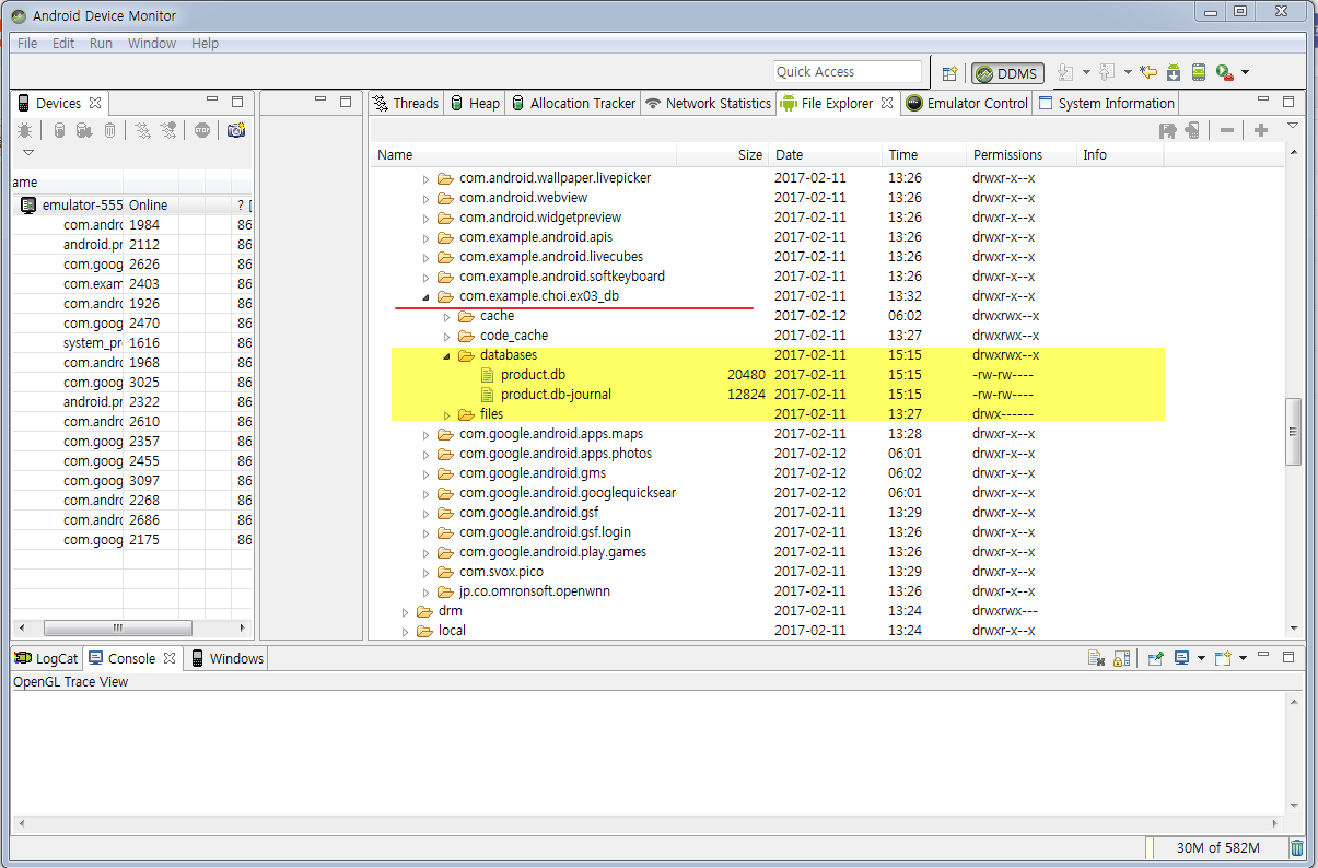 Android Device Monitor 에서 File explorer 를 보기 위해서는