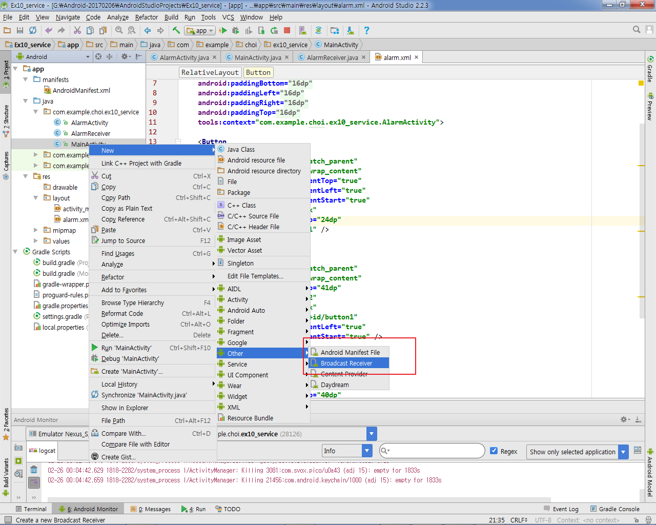 <!-- 인텐트 필터 - 암시적 호출에 사용됨 exam.test.receiver 이름을 임의 이름으로