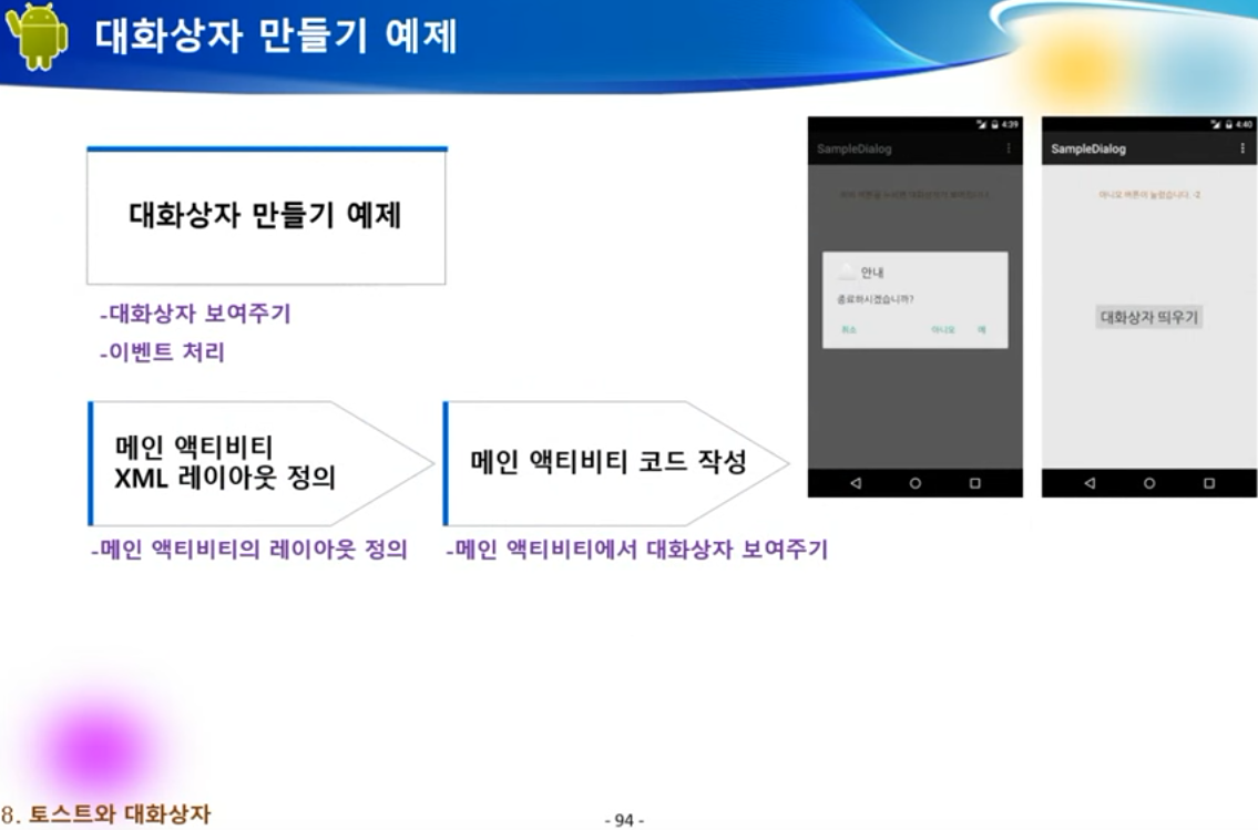 android:text="대화상자 띄우기"