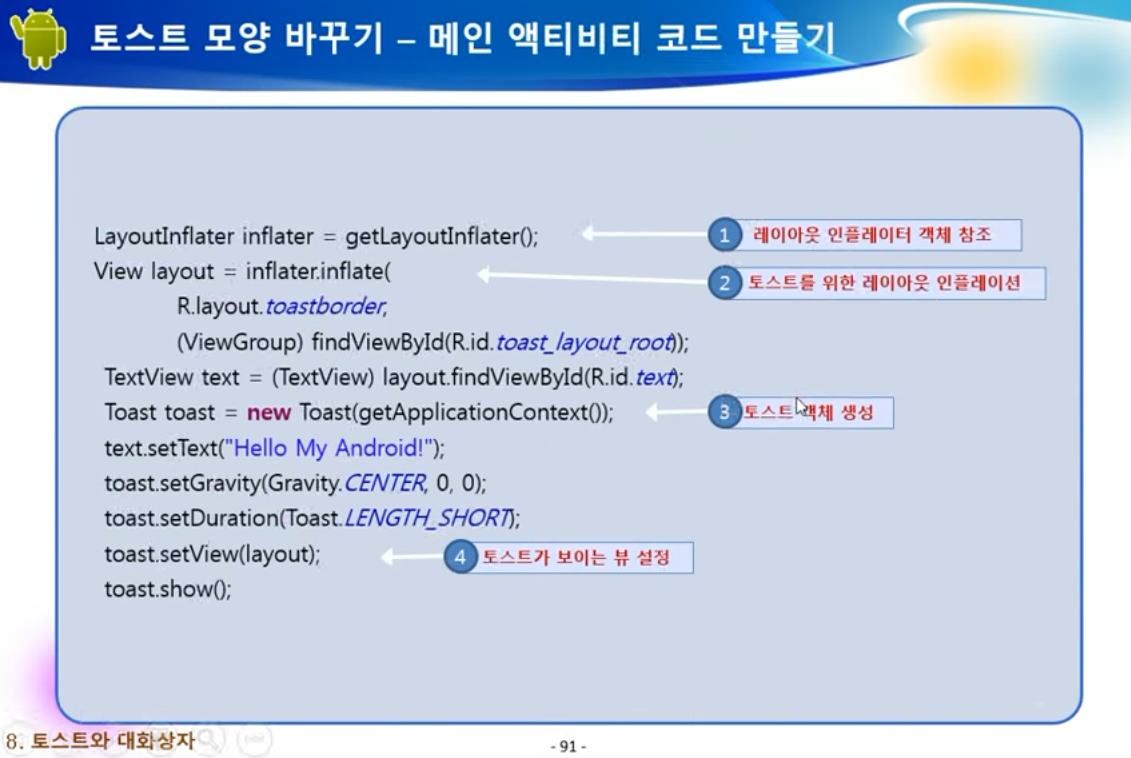 Toast.makeText(getApplicationContext(), "예 버튼이 눌렀습니다.", Toast.LENGTH_LONG).show();