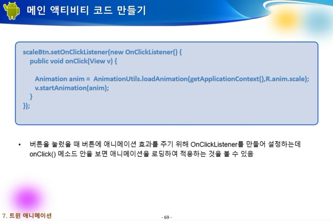 Animation scale = AnimationUtils.loadAnimation(getApplicationContext(), R.anim.scale);