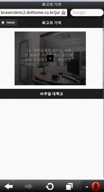 만약 첫 화면에서 동영상이 멈춰 있기를 바란다면 autoplay를 생략하면 됩니다. 그리고 만약 세 개의 동영상 코덱을 지원하지 않는 브라우저로 접속한다면 안내 멘트를 video 엘리먼트 안에 내용으로 넣어주면 자동으로 표시됩니다.