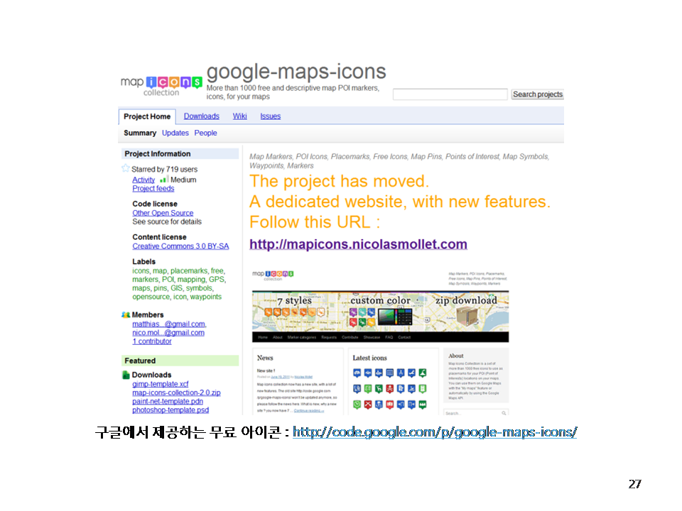 이번에는 사용자와 상화작용 할 수 있는 기능을 넣어보겠습니다. 즉, 사용자가 단추를 누르면 현재 지도에 마커가 표시되도록 하겠습니다. 마커는 보통 핀 모양의 아이콘을 사용하는데, 현재 인터넷에 호스팅되어 있는 이미지 아이콘을 먼저 준비해야 합니다. 물론 직접 디자인해서 자신의 서업에 올려놓아도 되지만, 구글에서 무료로 제공하는 아이콘을 사용하면 편리합니다.