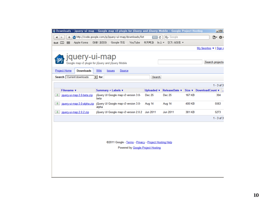 에 접속한 후 [Download]를 선택합니다. 그리고 jquery-ui-map-3.0-rc.zip 최신 파일을 다운로드 받습니다.