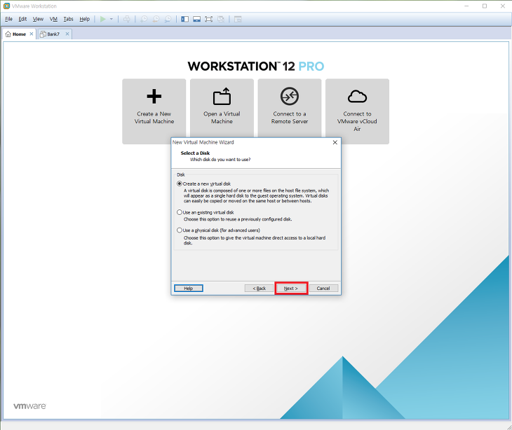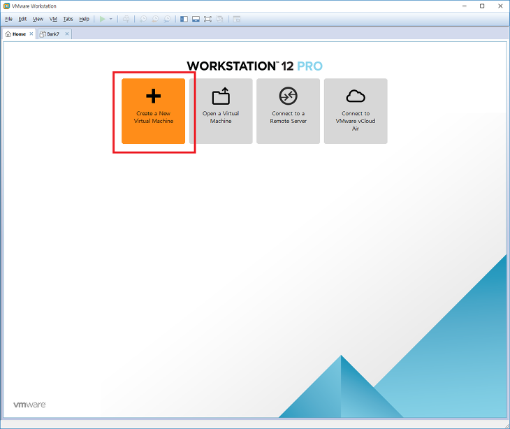 실행하면 아래와 같은 화면이 나오는데, Createa New Virtual Machine 버튼을 누른다.