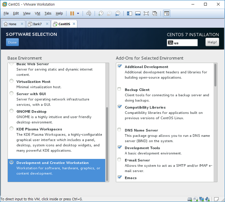 Software Selection부분이다. 필자는 리눅스 설치 목적이 개발이므로 아래와 같이 했다.