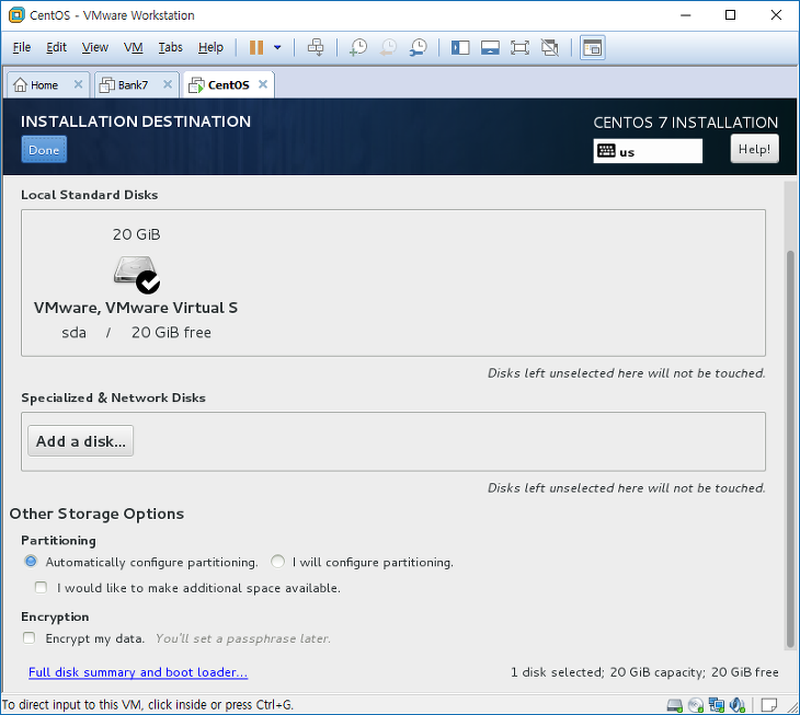Installation Destination부분이다. 학생 때는 검색해가며 최적으로 세팅해줬지만 요즘은 자동으로 하면 알아서 해준다.