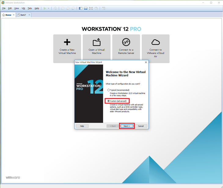 둘 중 아무거나 해도 상관없지만 Custom이 좀 더 세밀하게 옵션을 줄 수 있으므로 Custom을 선택한다.