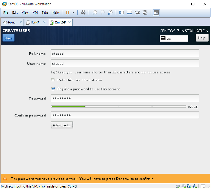 root 패스워드 설정화면이다. 패스워드를 넣고 Done을 누른다.