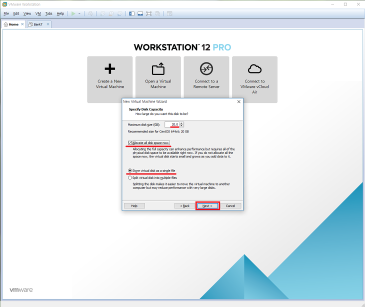 또 가상디스크의 파일을 하나로 할지 여러 개로 분할해 놓을지를 설정하는 것이다.