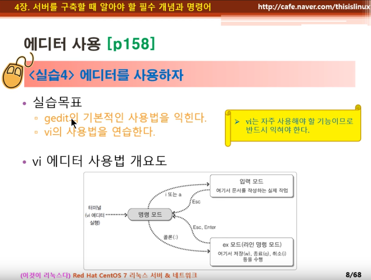vi 파일명 --> i키 -->편집/입력작업 --> esc 키 --> :wq