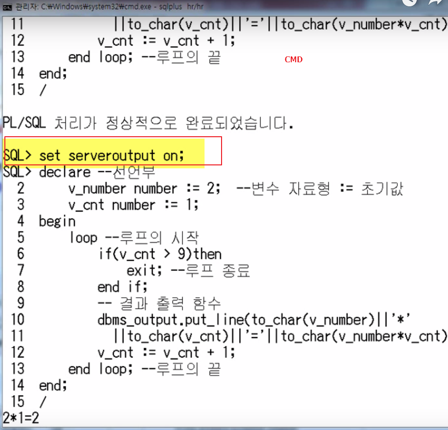 ||to_char(v_cnt) ||'='||to_char(v_number*v_cnt));