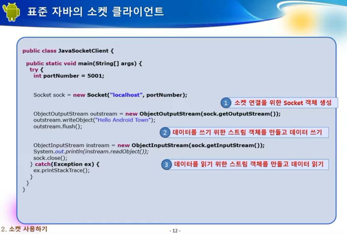 println("서버로 연결되었습니다. " + host + ", " + port);