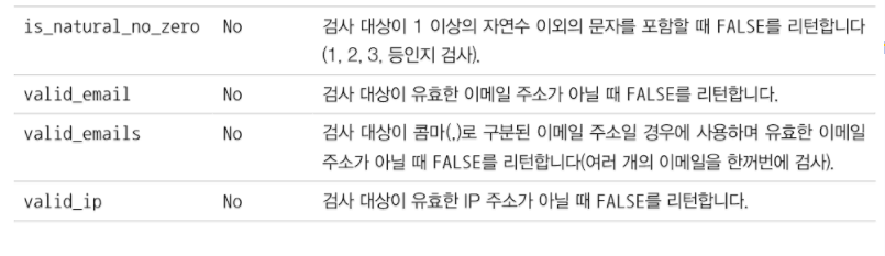 CodeIgniter 내부에 설정된 규칙 이외에 PHP 함수 중 하나의 파라미터를 받는 함수는 모두 규칙에 사용할 수 있습니다.