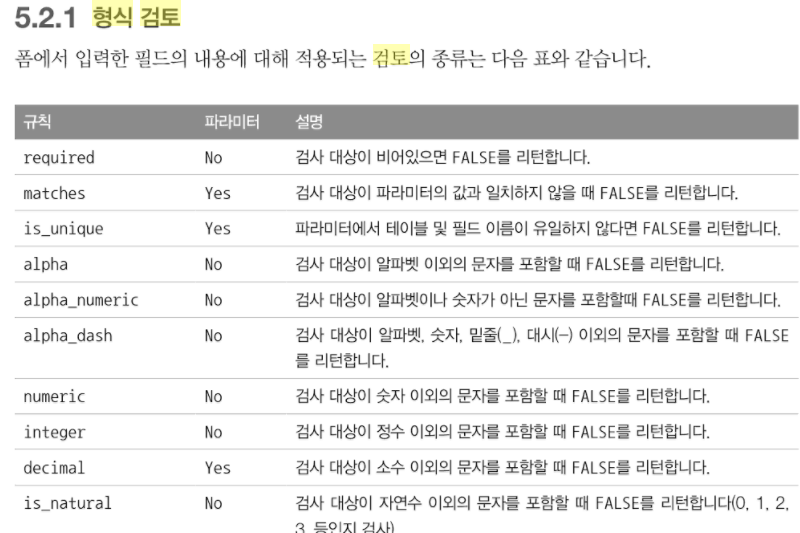 그림 5-3 은 아무런 데이터 입력 없이 전송 버튼을 눌렸을 때의 결과 화면입니다. "The 아이디 field is required" 메시지는 폼 에러 메시지가