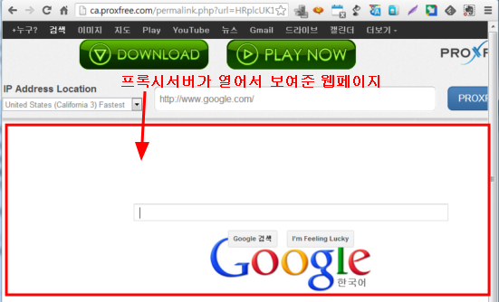 가장 쉽게 말하면 차단된 웹사이트도 (해외의) 프록시 서버를 이용하면 내 PC에서 열린다는 말입니다. 프록시 서버를 사용하는 가장 간단한 방법은 웹프록시 사이트를 이용하는 것입니다. 이 방법이 편리한 것은 컴퓨터에 어떤 설정을 할 필요도 없고 어떤 프로그램도 설치할 필요가 없다는 것입니다.![]()